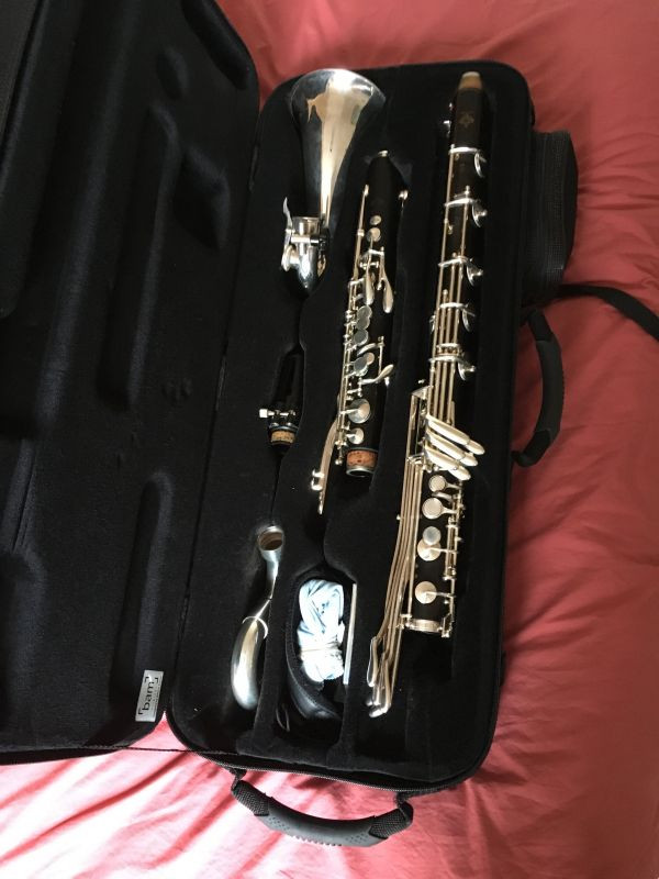 Buffet Crampon Prestige Bass Clarinet to Low C with serial number 34079. Was in a black BAM trekking case.