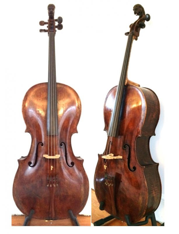 The cello is fitted with new high-quality metal strings, has a summer and winter bridge. A Hiscox hard case, and a Coda carbon-fiber bow (it deserves a much better bow) are available for sale separately. The cello is available for examination and trial in Brookline Massachusetts.