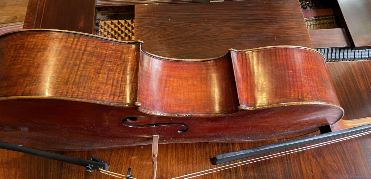 This splendid full-size (4/4) cello, fashioned in 1879 by the esteemed Mittenwald atelier of Neuner & Hornsteiner. Attractively aged golden-brown varnish developing graceful patina, and a warm, lyrical tone. With over a century of subtle aging, this instrument offers depth and resonance.