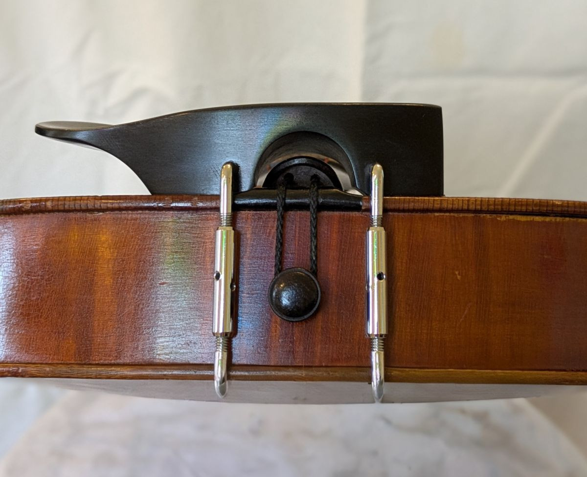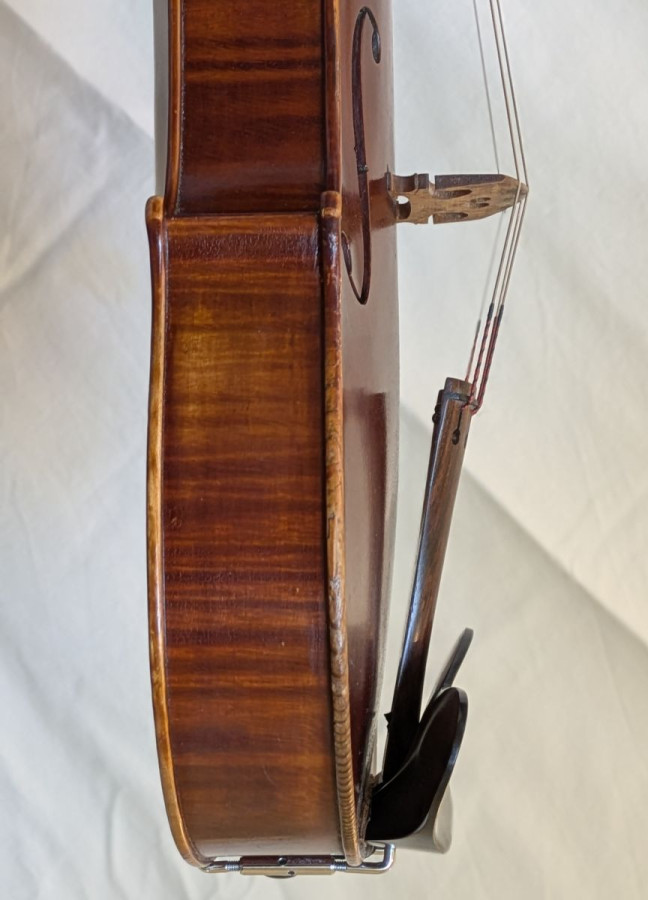 The viola has recently been worked on to ensure comfort when playing and is currently fitted with a tall, Berber chin rest and Wittner Fine Tune Pegs. Complimentary oblong Concord case with room for 4 bows.