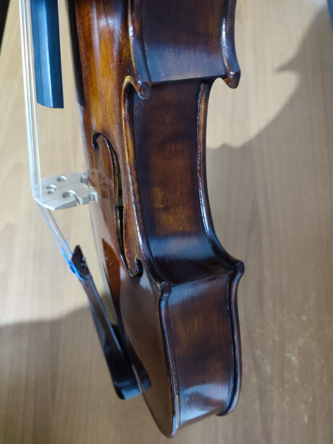 "The instrument has been entirely handcrafted with meticulous care, respecting the specific thicknesses required for high-quality violas. Weight: 620 g."