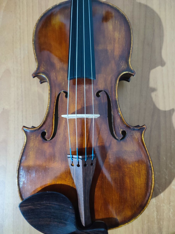 Viola 40,5 cm modello Stradivari tavola abete latemar, fondo e fasce pioppo, tastiera ebano, montatura palissandro.