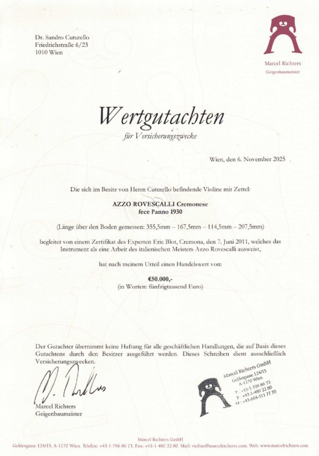 ✅ Comes with a current valuation report by luthier Marcel Richters.
