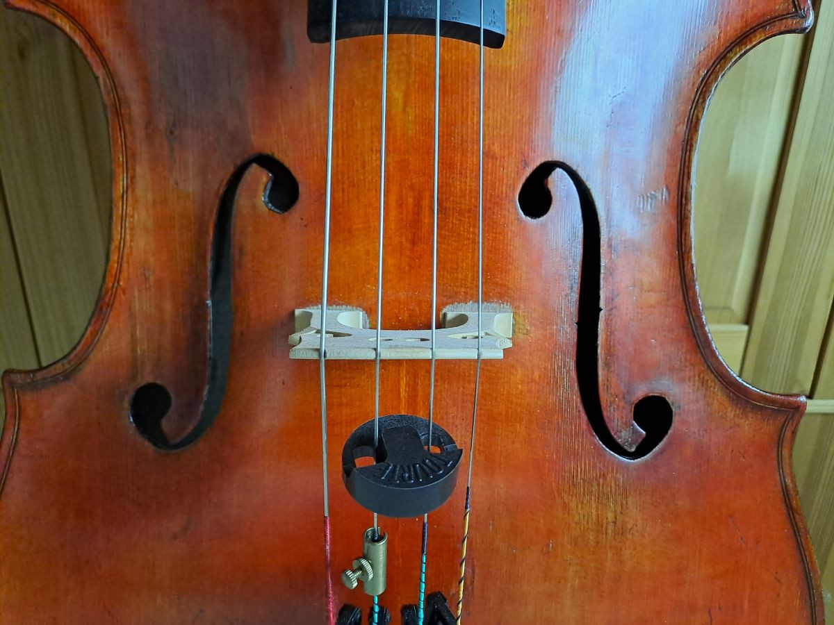 Laut Vorbesitzer war dieses Instrument das Dienstcello eines Cellisten beim Theater an der Wien, später Gärtnerplatz-Theater. Es ist in Kopiermanier gefertigt und hat daher, wie einige originale alte Meisterinstrumente, einen etwas breiteren Korpus (36,3 / 25,5 / 44,3 cm). Daher passt es u.U. nicht in die meisten handelsüblichen Kästen hinein. Ein passender Kasten gehört daher zum Angebot.