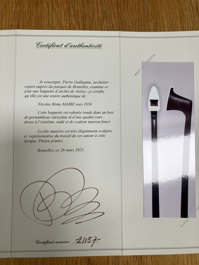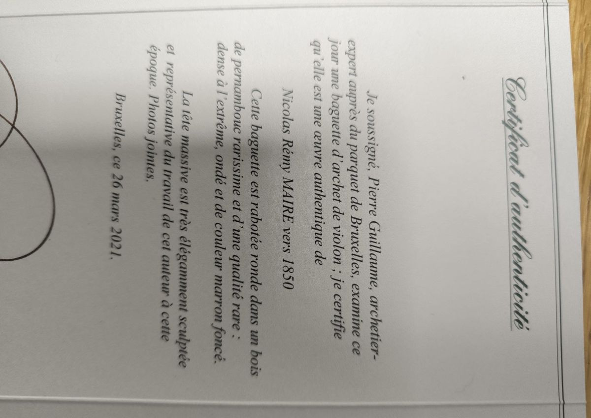 Cette baguette est rabotée ronde dans un bois de pernambouc rarissime. Dense à l’extrême, ondé et de couleur marron foncé. La tête massive est très élégamment sculptée et représentative du travail de cet auteur. Vends avec certificat et estimation de valeur.