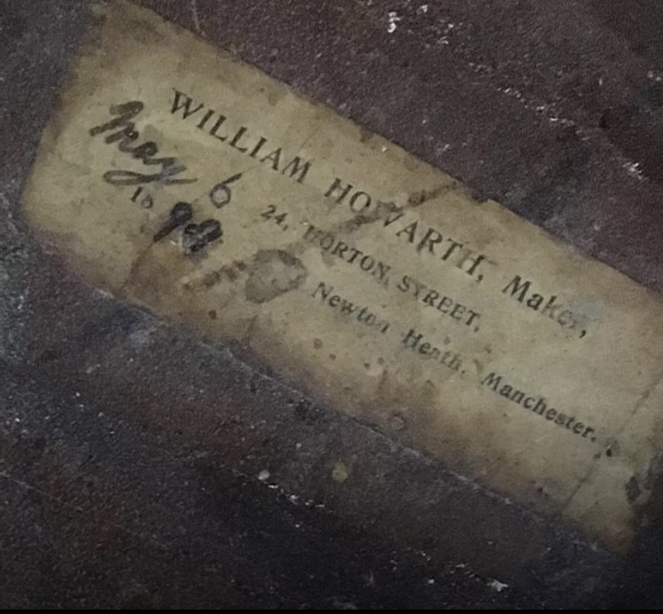 Labelled and branded 1899 Manchester. String length 106.6cm.