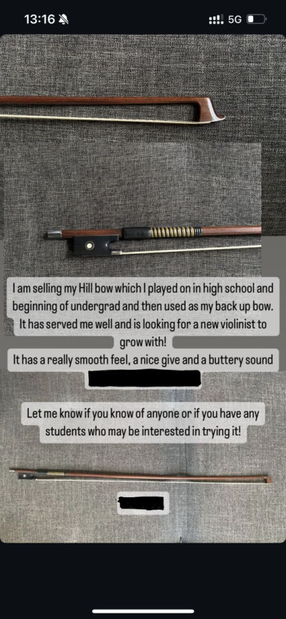 It has a sweet, buttery tone and very smooth feel. It is quite comfortable to play and can create a variety of springy strokes with good ricochet. It was last played on by an advanced high school student and through their college career.