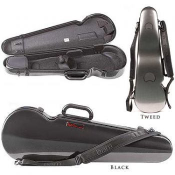 BAM hightech shaped grey carbon fibre case stolen with viola, bow, sets of strings, metronome, wooden mute, viola part from Trout Quintet, viola part from Sinfonia Concertante. The back of the viola is very pretty and noticable!