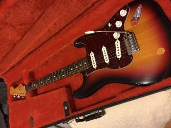 3-tone sunburst Fender American Highway 1 Strat with a tortoise shell pick guard. Recently updated the tuners to vintage locking tuners and replaced the pickups with a set of Big Dippers.