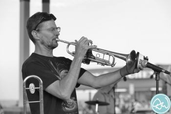 you can see the case well in photo #2. the trumpet is shown on both sides, lots of wear on the silver finish
