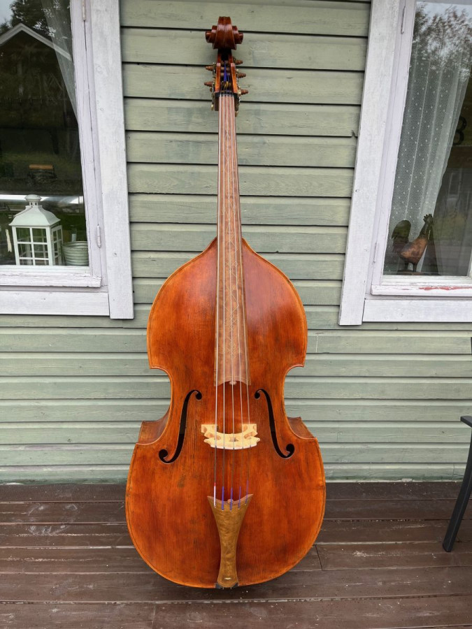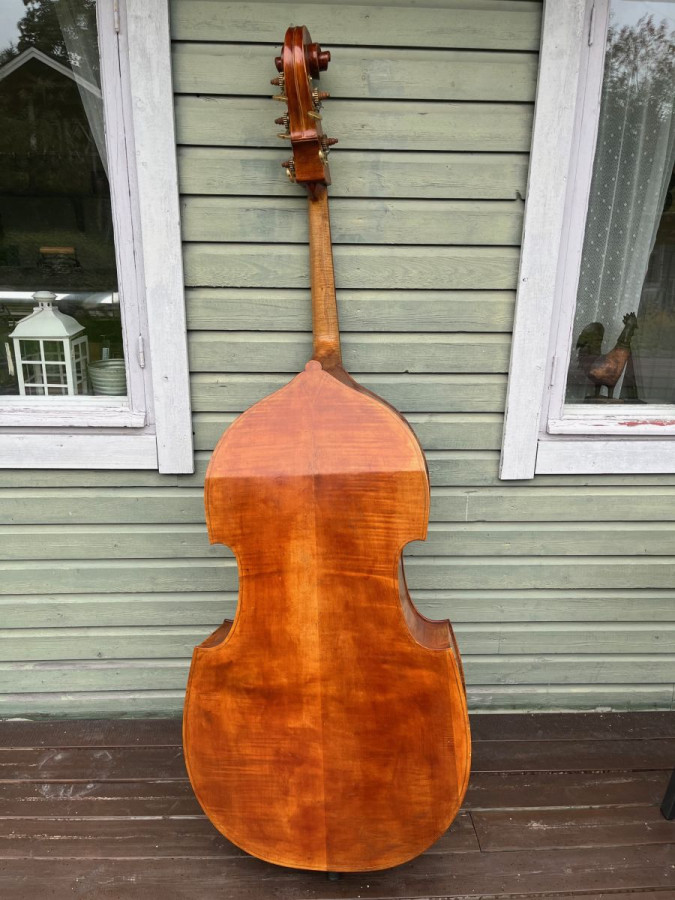 A 5 string double bass in excellent condition. Big and colourful sound with good playability. String length 107 cm and flat back.