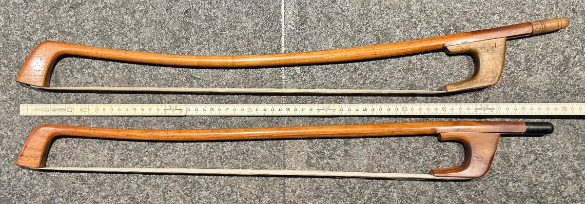 Who would like to try two unusual historical bows from the second half of the 18th and 19th centuries with a unique character in Zurich or Zug? Both have been rehaired and are in good condition. They weigh 140 and 150 grams respectively, and the asking price is EUR 1,200 each. I look forward to hearing from you!