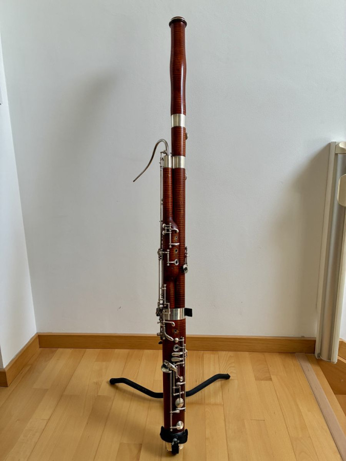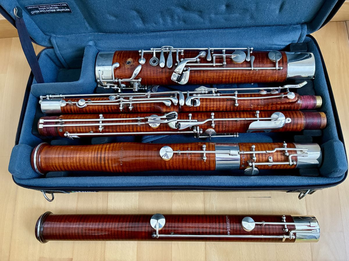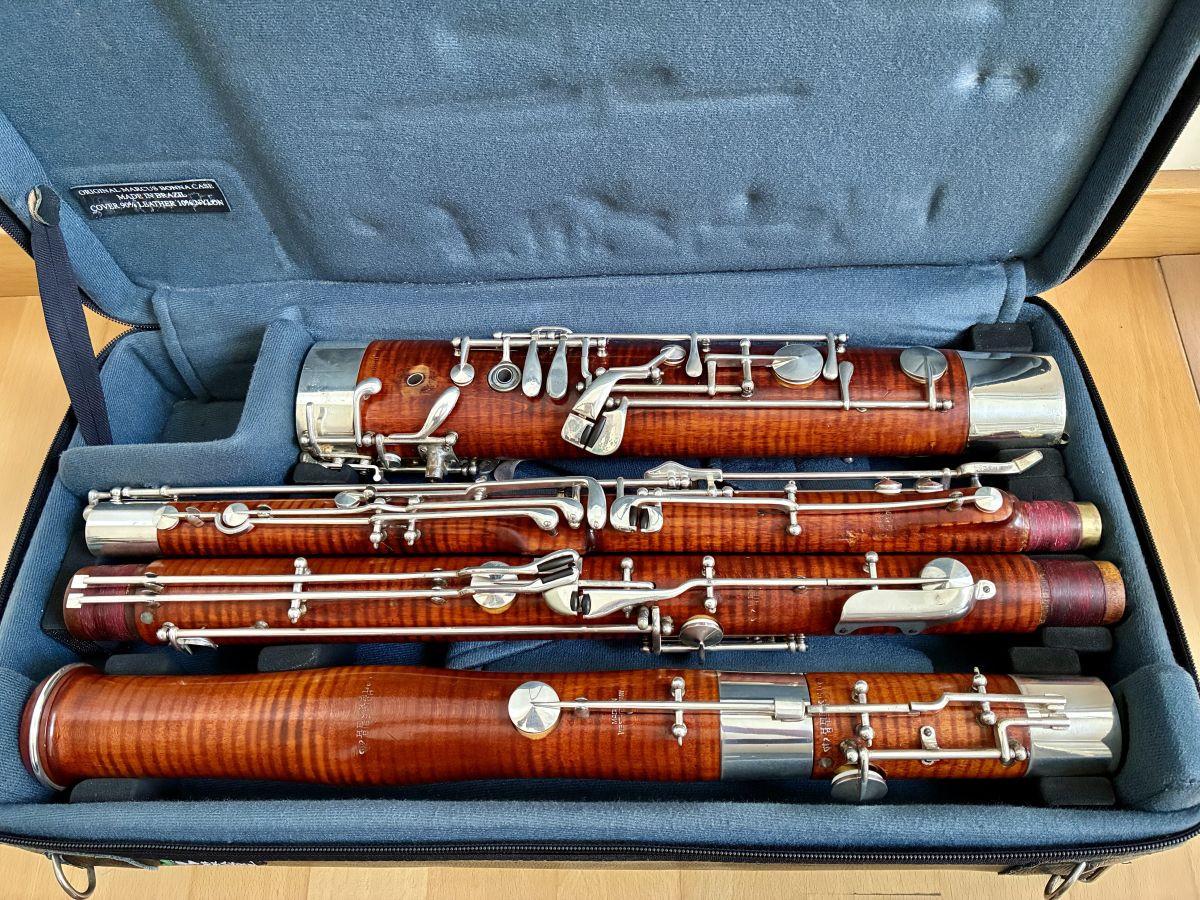 11xxx series with the nice Heckel typical tone. It’s in good condition, Always played in professional orchestras. Gentlemen model. It comes with one of his original CC1 Heckel bocal and one new C2 Heckel bocal, an original Heckel A-bell and its mechanism, other extras, including a left hand double whisper key and an A♭–B♭ trill, and Marcus Bonna case with new nylon textile.
