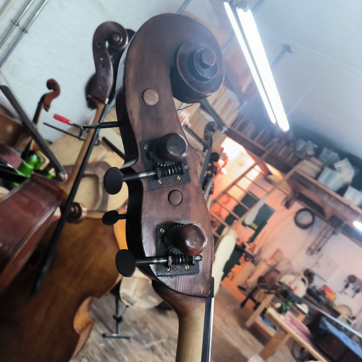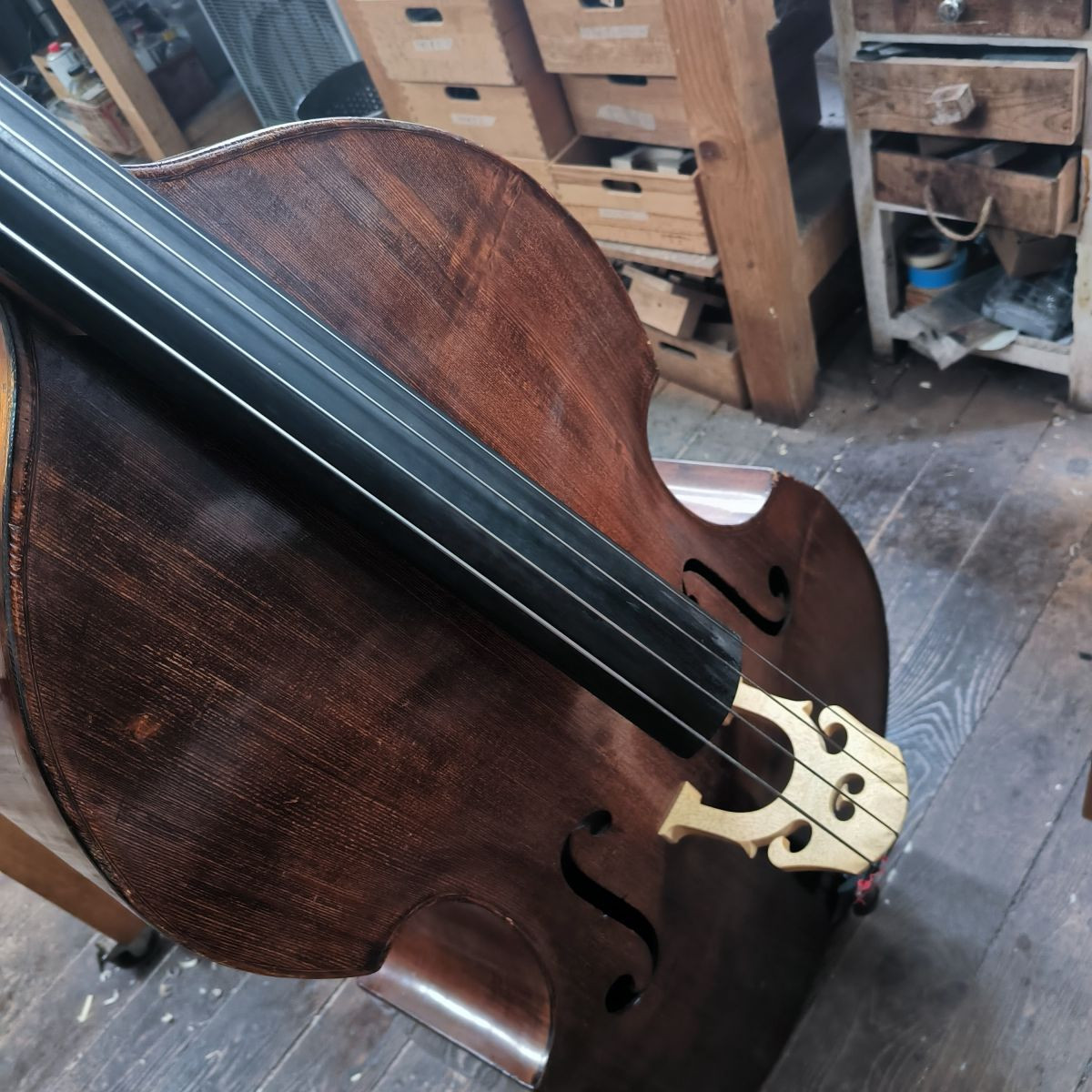 Beautiful original 1877 J. bina 4 String bass in viennese style with label. Big sound and very stable instrument. Excellent playability and in good condition. The instrument is ready to test in Berlin.