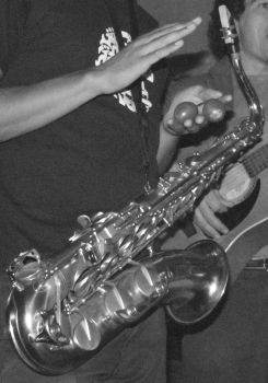 The mouthpiece is a hard rubber Meyer that's pretty worn in the sense of a greyish color change outside on the sides and light brownish inside. It has a protector in form of a plastic pad place where the teeth bite.