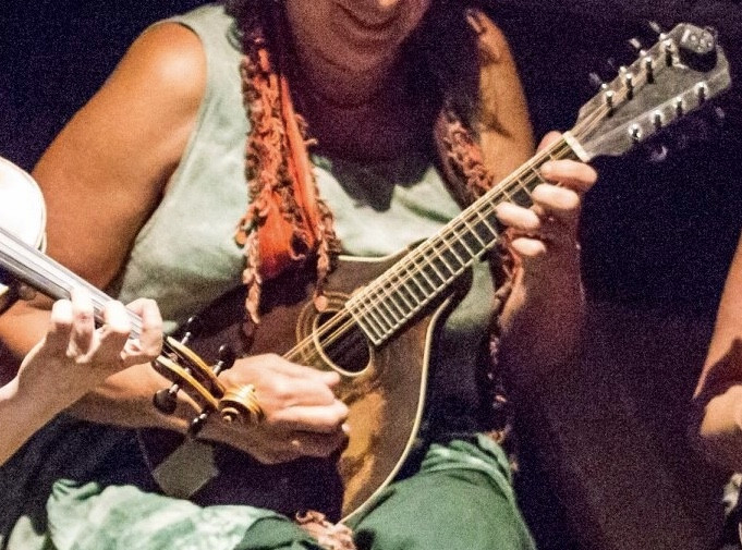 Gibson A-2 mandolin, 1918, original tailpiece, new black Schaller tuners (guitar tuners), plenty of wear to the finish of the face below the strings, “the Gibson” inlay on headstock, black hard case