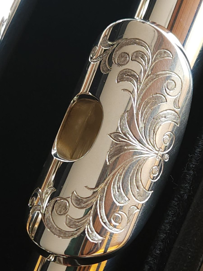 Selling my Muramatsu SR heavy wall flute, open hole, inline G, soldered tone holes & B-foot. It features a beautifully engraved lip plate and crown.