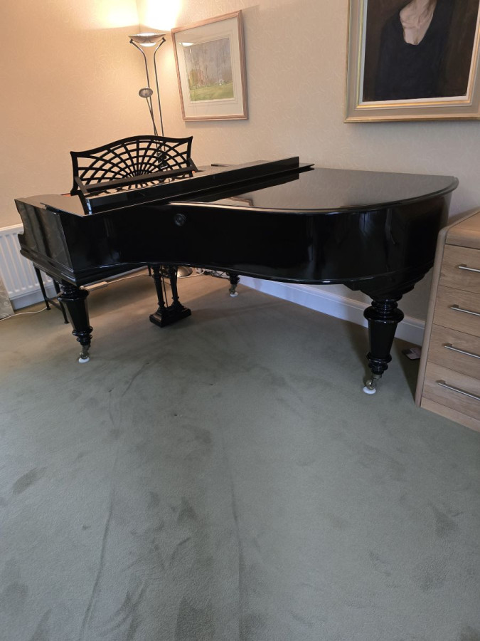 This is an exceptionally beautiful gloss black bechstein piano. It is tuned twice a year and played everyday. It has a wonderful rich tone that modern pianos cannot achieve. It's situated on the Wirral and with easy access and I might be able to help with professional delivery. The the piano was restored by Liverpool pianos in 1983 and the Hammers were restored by a Steinway trained technician two years ago. This is a beautiful piece of furniture in its own right as well as being a joy to play.