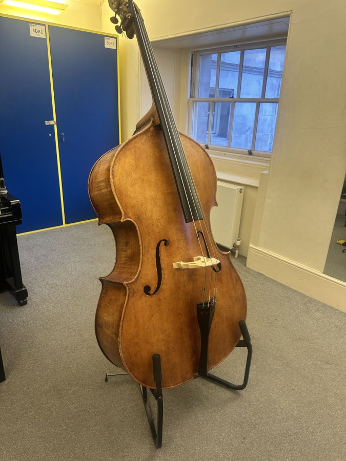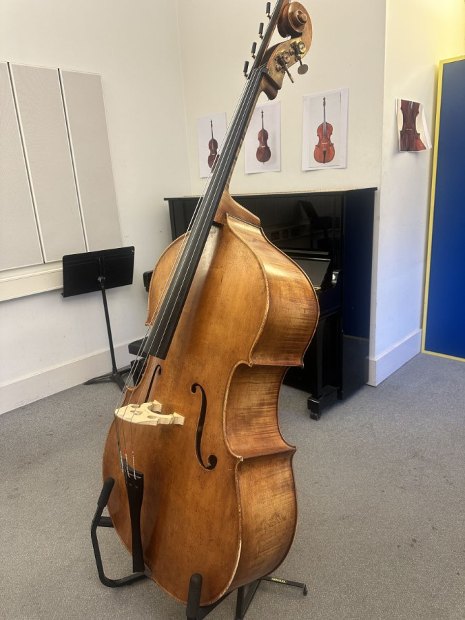 3 year old Double bass built in London, extension built in 2024 by Laurence Dixon. 3/4 size with 3 flexi core deluxe and 1 Eva pirazzi C string.