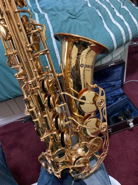 1990 YAS-62 purple logo alto in a silver BAM hard case. Lacquer 99.5%. Also with a white Getasax NY mouthpiece. Devastated to have had this stolen and reward offered for its return, no questions asked.