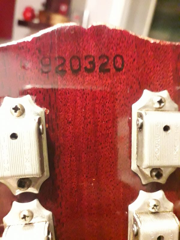 Gibson SG 1969 serial number 920320, two pieces are not original: the golden tailpiece and the truss rod cover reading "Custom".