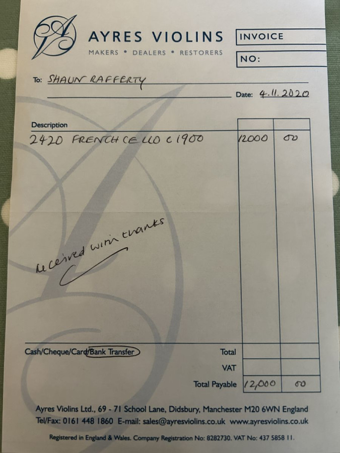 Fine french cello with a big warm sound. Well maintained and regularly played. Comes with free Gewa hard case bought for £700.