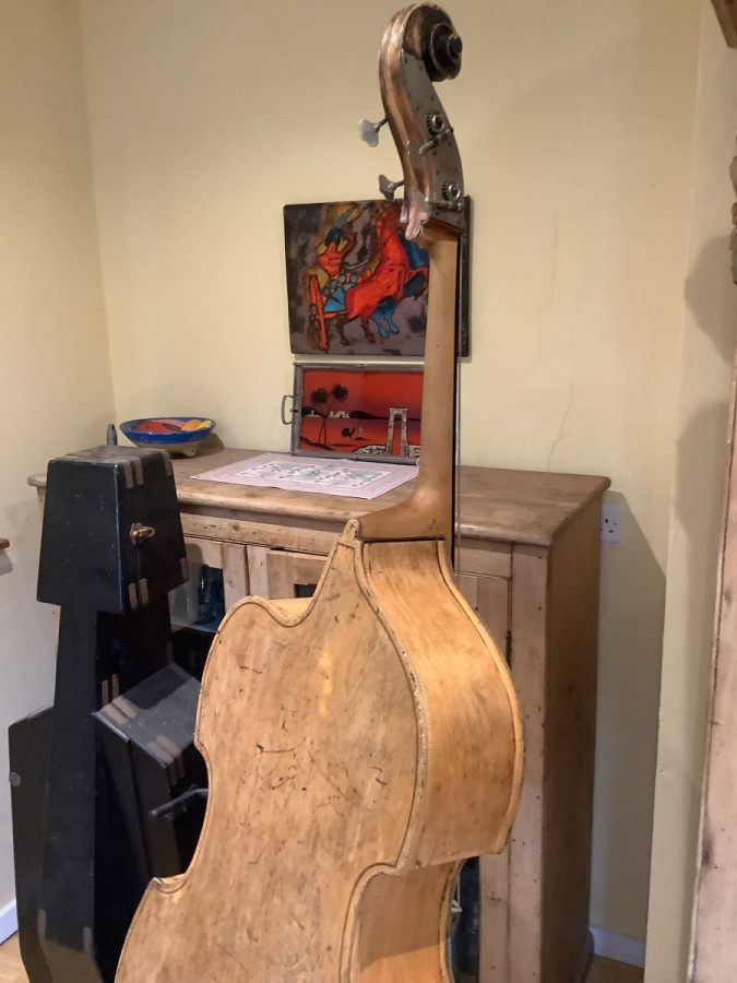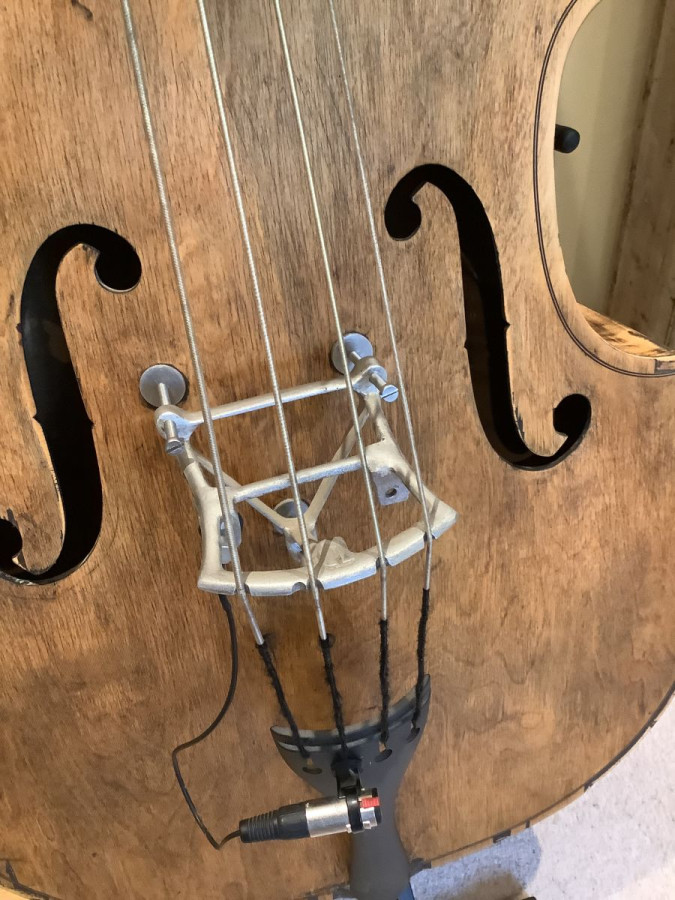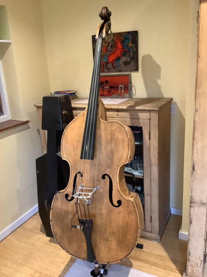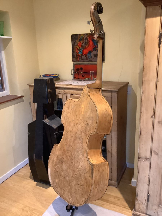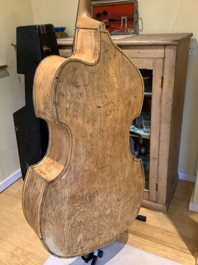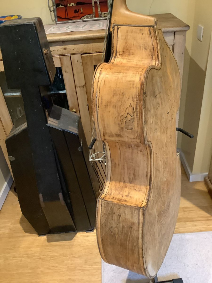 A very rare 3/4 cutaway bass made in the Fred wilfer factory in the Schonbach Czechoslovakia,before he relocated to Germany to start the Framus brand.she is set up with the old tri leg metal bridge,low tension strings and pickup.Great for jazz and rockabilly.
