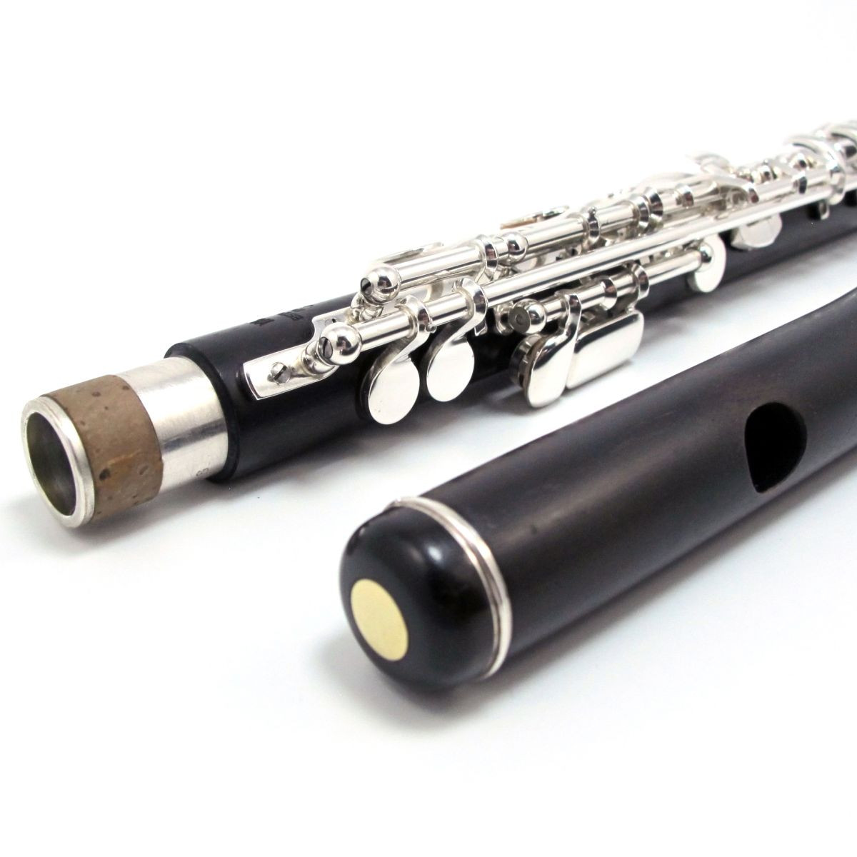 Yamaha 82 professional piccolo in grenadilla. Handmade, overhauled and optimized in 12/2025 at La mécanique des flûtes. Silver-plated mechanism readjusted, split-E mechanism, vented C key, modernized headjoint, heavy crown, and cork pads. Never cracked, only a small silver-plating flaw on the E♭ key. Comes with a bonus metal headjoint and a one-year warranty.