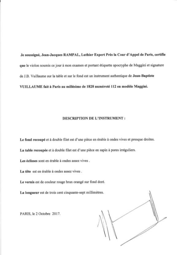 1828 JB Vuillaume Violin, Maggini copy. in great condition. comes with certificate of authenticity from Rampal