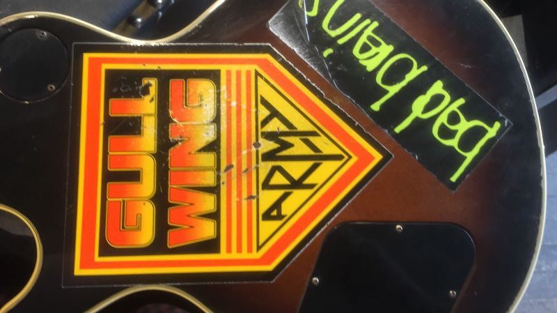 JCL initials carved in back - Gull Wing Army and Bad Brains stickers on back