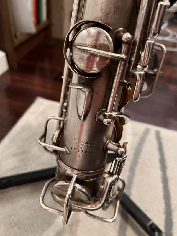1923 Conn New Wonder series I alto saxophone in a silver lacquer finish. The serial number is 112788. It was in good condition when it was stolen.