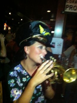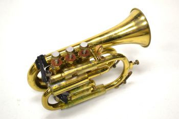 Pocket trumpet antique, brass, cork on bottom of horn for holding