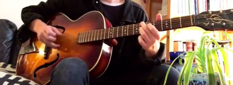 1963 Hofner Senator. Dark sunburst Finish, no pickguard. Acoustic arch top.