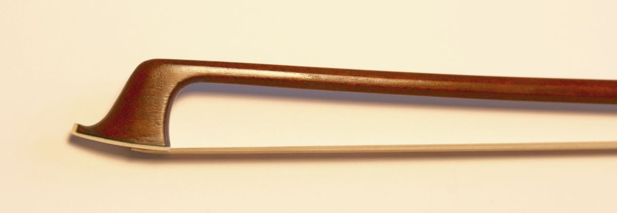 From my private collection: this fine bow plays very well ‒ notably, firm, easily controllable strokes despite its light weight. Octagonally shaped, premium pernambuco with a fully silver-mounted ebony frog.