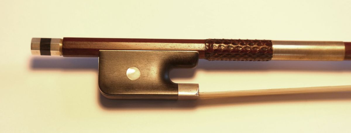 From my private collection: silver-mounted bow in fine condition, made ca. 1930 by Friedrich "Fritz" MEINEL (1885‒1962), previously owned by a Gewandhausorchester Leipzig cellist. Its round stick’s elasticity, yet adequate firmness, produce versatile playing characteristics and effortless sound projection ‒ on a par with far more expensive French bows.