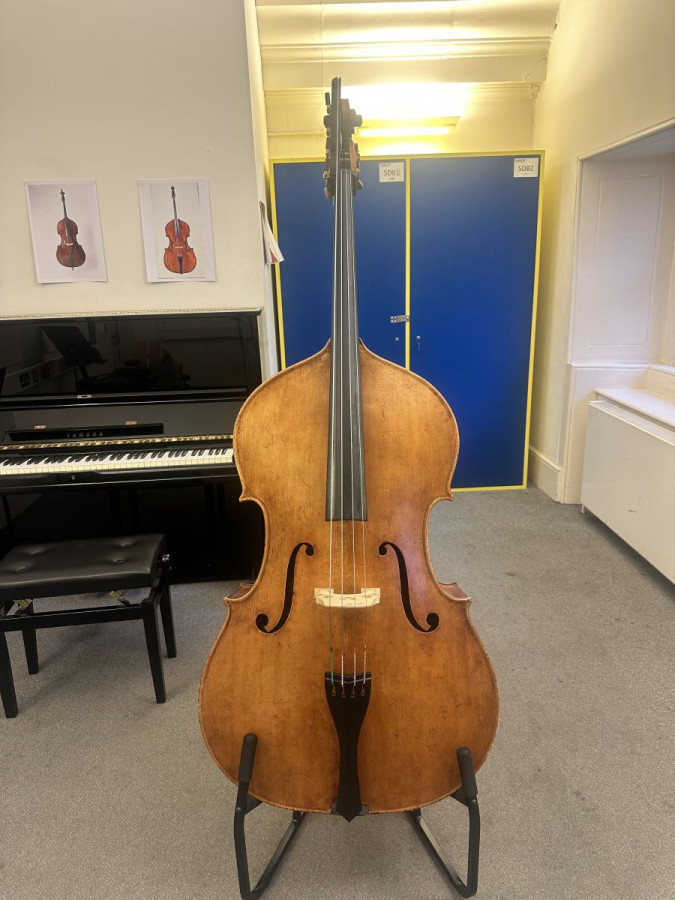 3 year old Double bass built in London, extension built in 2024 by Laurence Dixon. 3/4 size with 3 flexi core deluxe and 1 Eva pirazzi C string.