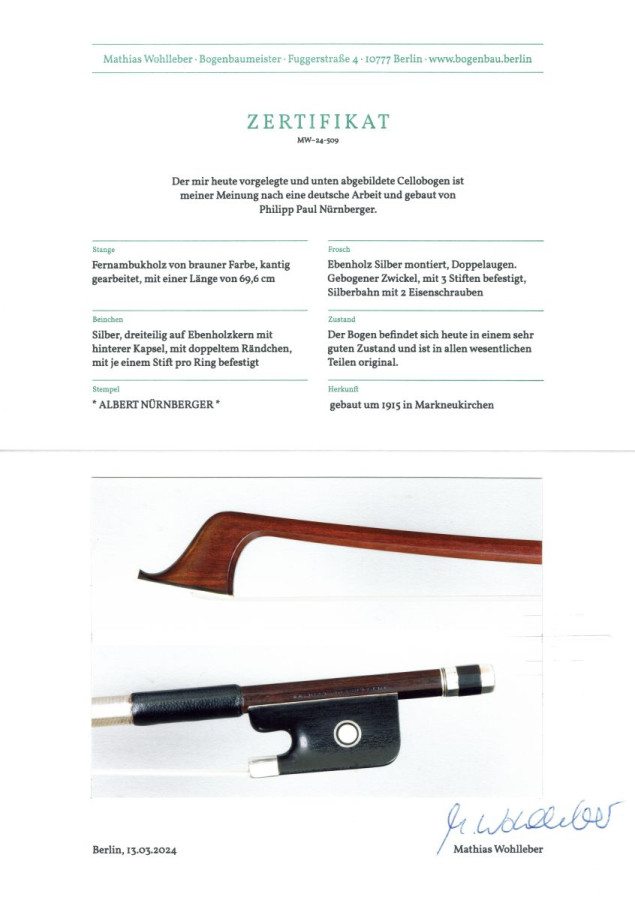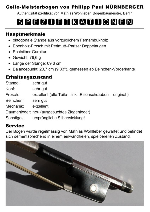 Rarität: feinster deutscher Cellobogen von Philipp Paul Nürnberger (um 1915) mit Echtheitszertifikat