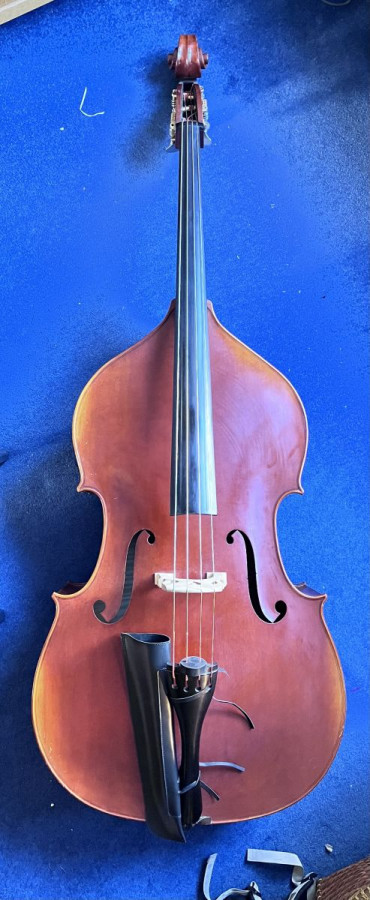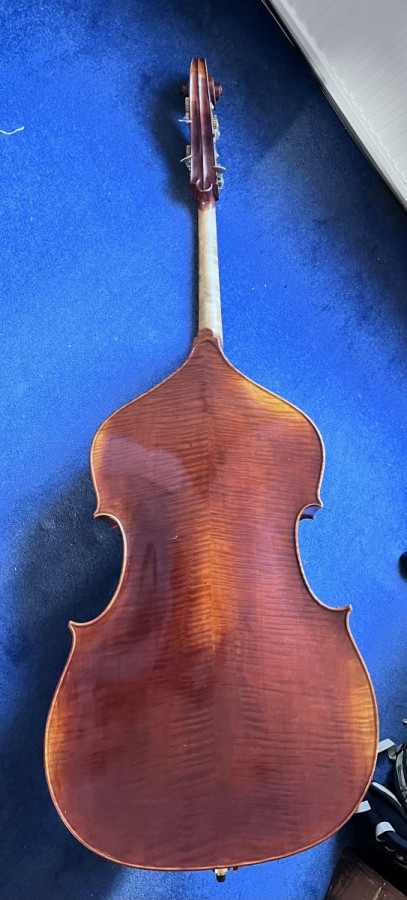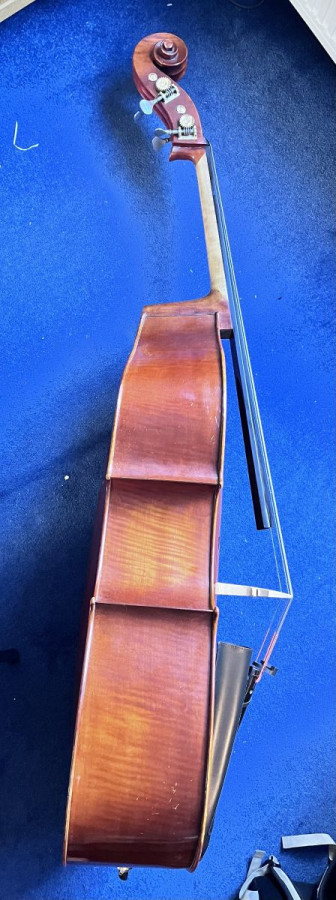 Nicely made and attractive conventional 4-string double bass. It is easy to play and makes a good sound that carries well. I have enjoyed many years of playing this instrument, which I bought new in 2006 from Malcom Healey in Surrey for £3,000, in my local Symphony orchestra. I have now bought myself a 5-string and I don’t have the space to keep both.