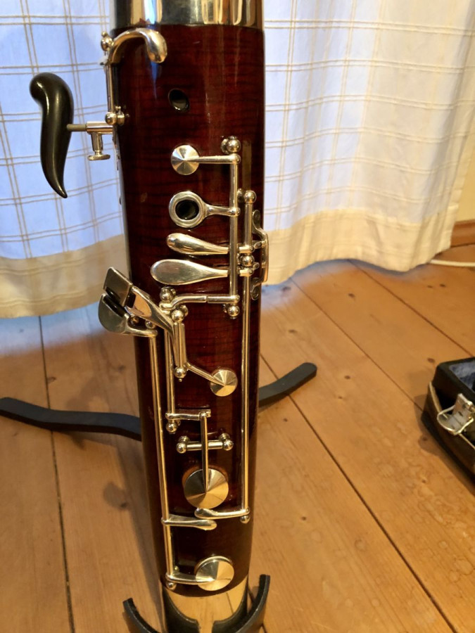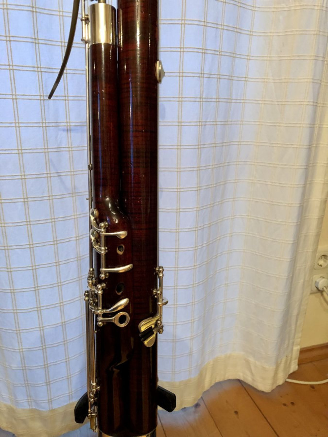 Generalüberholt bei Uwe Döhnert in Leipzig, in perfektem Zustand. Bj.1976. Mit 2 S-Bögen: ein Heckel CD2 und ein Püchner CD2 geflickt, aber sehr gut spielbar. Im originalkasten.Sehr schöner weicher, warmer Klang. Sie können das Instrument gern in Leipzig ausprobieren. Kontaktieren Sie mich gern.