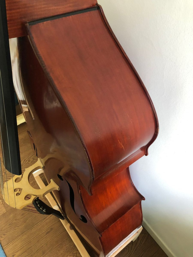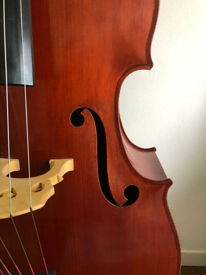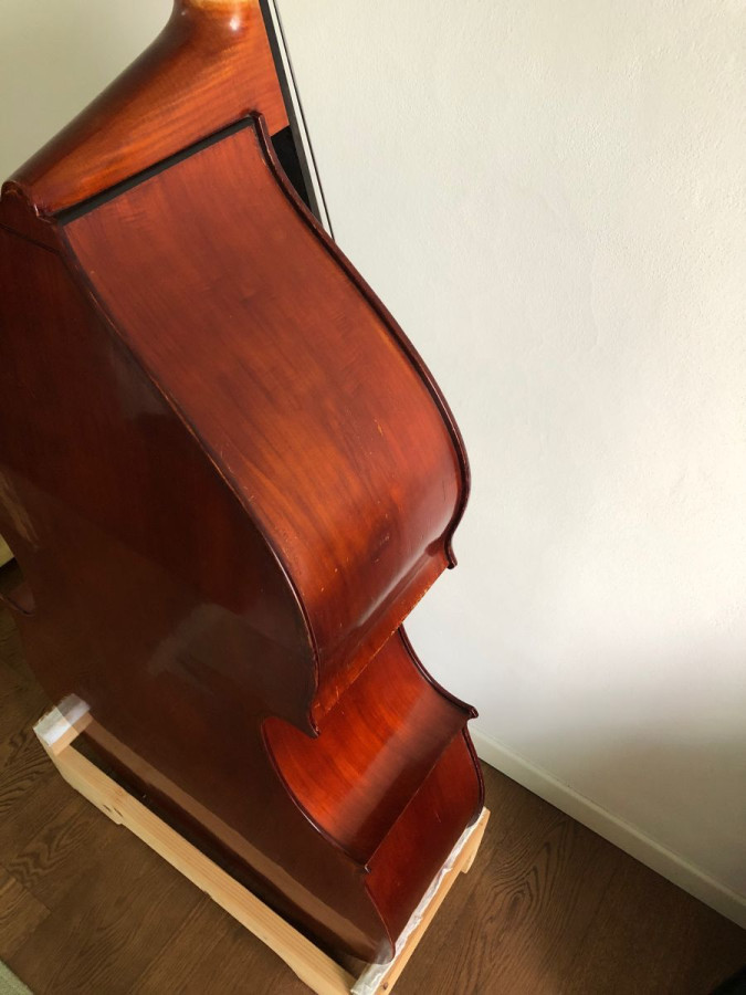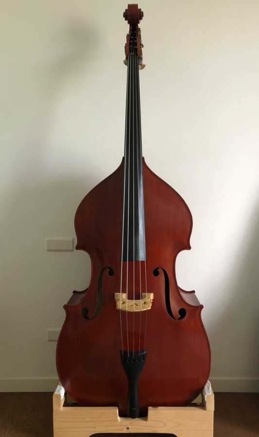 For sale Italian five string double bass made in 2013 by the luthier Federico Bandini, Castel San Pietro (Bologna). Back and ribs made of poplar, string lenght 106/106.5. Perfect orchestral sound and easy to play in the high register.