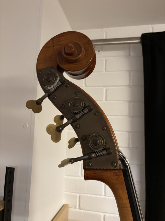 German 7/8 Double Bass with Knobel (Erfurt) Repair Lable