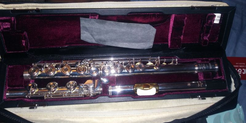 Solid silver body, French-style pointed key arms. Open-hole with Straubinger Phoenix pads and white gold Springs. Headjoint solid silver, with gold overlay on embouchure plate and also in the inner tubing of head joint. Type Am cut headjoint, B footjoint with gizmo, C sharp Trill key, split E mechanism. A beautiful flute!