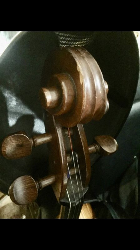 As can be seen from the attached photos, the scroll has a small chip on the top left hand side (as you look at the instrument), and the seam/lining between the upper bout and front on the left hand side (as you look at it) has been shaven off/worn down to form almost a straight line of around 3cm. This was revarnished by J. P. Guiver & Sons in 2017 when the cello underwent extensive repairs following an accident.