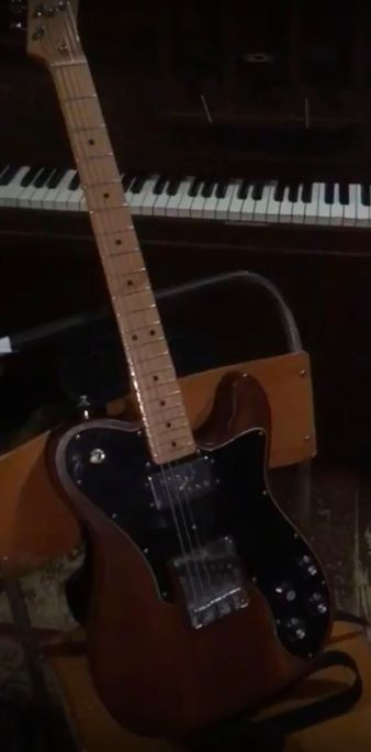 Fender 72 Telecaster Custom, worn Walnut (brown) finish, buckle rash on the back, black strap & Mexican neck.